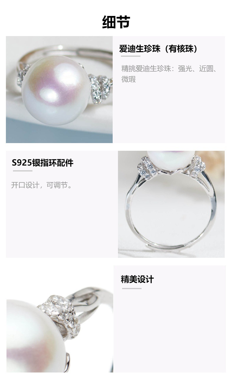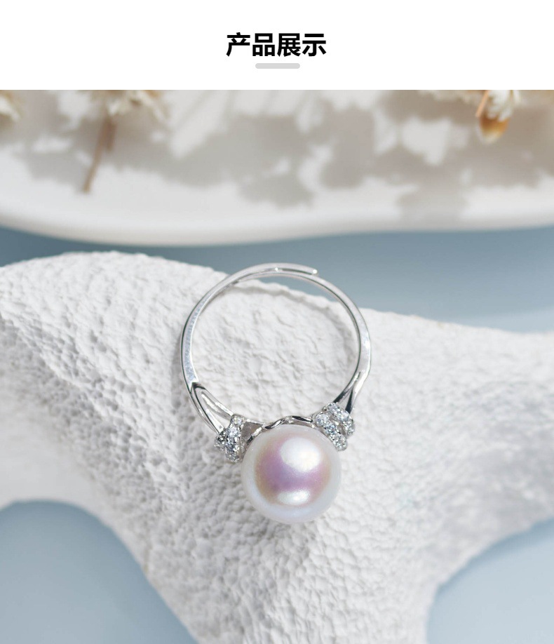 Customized Strong light nearly round Edison pearl ring S925 silver accessory opening adjustable natural freshwater pearl ring